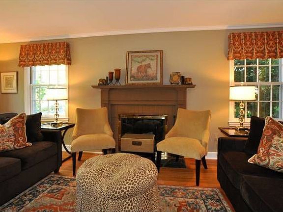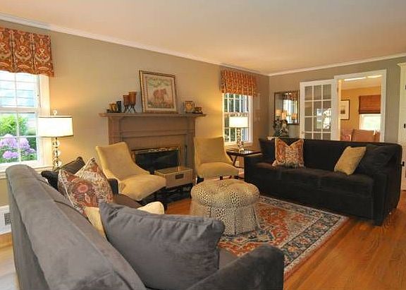 So inviting....a bluestone terrace lined with garden beds spans the front of this handsome stone and shingle Colonial nestled in a picturesque neighborhood setting. Interior rooms are bright, inviting and impeccable, accented with soft, pleasing wall colors and an easy circular flow that makes entertaining pure pleasure. The living room features a central fireplace with glass-front doors and opens to a sun-lit family room with vaulted ceiling, two-skylights and door to the rear deck and level fenced yard. The formal dining room is located off the living room, while an ultra-spacious kitchen enjoys both front and back property views. Dressed in crisp white custom cabinetry, the kitchen sparkles with stainless steel appliances, Corian countertops, and a granite-topped center island. A breakfast/sitting area is skylit from above, with sliders that open to the deck, and has easy access to the attached one-car garage. The second floor is host to three charming bedrooms and a hall bath, including the master bedroom suite and lovely master bath. There's lots of room on the unfinished lower level for extra leisure living, just waiting for the creative homebuyer. This storybook home is well-located and move-in ready -- a little piece of heaven!