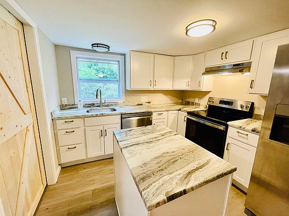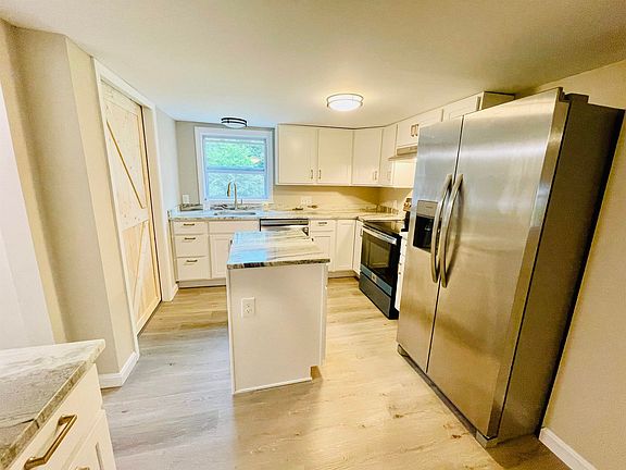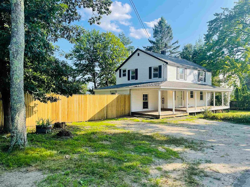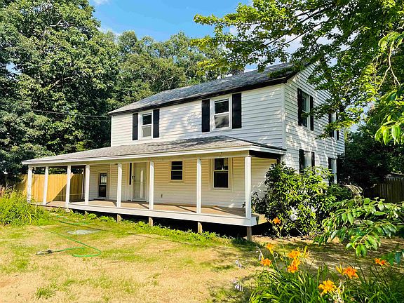 Four bedroom home in desirable Merrimack with a farmer's porch and it has been recently renovated inside and out. Sunny kitchen with new cabinets and center island, all with soft close doors and drawers, includes a double trash drawer cabinet and gorgeous granite counters and all brand new SS appliances included. Refrigerator with auto ice and water. The farmhouse door is the perfect decor to hide the 3/4 first floor bath. Open concept living room/dining area with new flooring. First floor bedroom and a sunroom with a laundry room/closet. Upstairs you'll find three additional bedrooms with wide pine floors and a full bathroom that is fully renovated including a beautiful Carrara marble top vanity with a fully integrated power bar and USB ports. All interior doors are new, mostly all new windows, insulation, drywall, electrical, lighting fixtures, plumbing, interior paint, both baths are completely renovated including new tile floors. Brand new public water line to the house. The heating system is approximately 2 years old. All new heating baseboards. Fully fenced back yard on about 1/3 of an acre of land, plenty of room for a garden and a pool!! Owner has a NH RE License. Minutes from local attractions such as Hayward's Ice Cream shop and Buckley's Bakery and Cafe :)