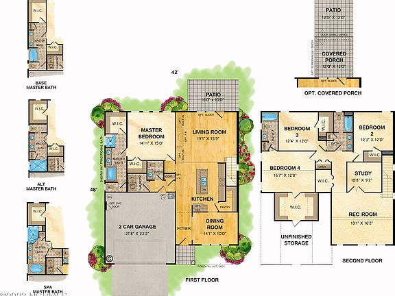 This 2 story home is definitely a charmer. The Martin features a downstairs master suite with two walk in closets and a walk-in tiled shower, with 3 additional bedrooms on the second floor. This home will accommodate many guests! In addition to the bedrooms upstairs, you will also find a home office and rec area which would make a great second story living room. The storage in this home makes it one of a kind!