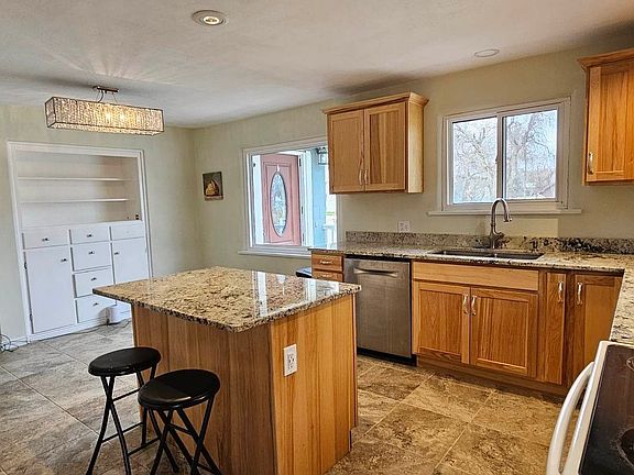 A spacious 4 bed/2 bath home, huge backyard, shop and garages will give you room for all your toys, tools and business. Large living room with fireplace, newer kitchen with kitchen island and granite countertops, granite countertops in main bathroom. Tile floors kitchen, bath und downstairs. On demand water heater, water softener (owned). Newer windows. Detached double car garage, 4 car shop plus RV parking. Storage shed. All the main systems of the house are redone. New sheetrock and insulation in the basement. French drainage around the house. Bedrooms downstairs have egress windows. Shop has a security room and vending machines (snack and beverage) upgraded for credit card reader.