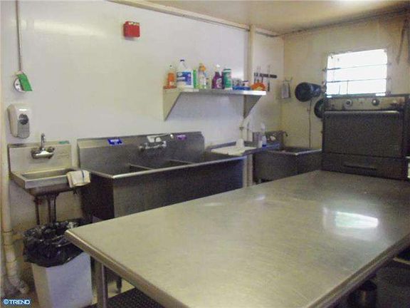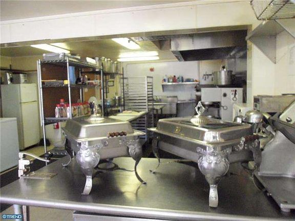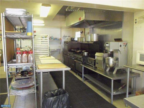 Wow! This catering place is perfect for the entrepreneur who wants to start a catering business. All the equipment is included such as the walk in freezer, three stoves, meat cutter, deep fryer, tall shelves and short shelves, and more.
