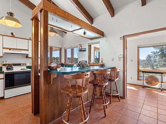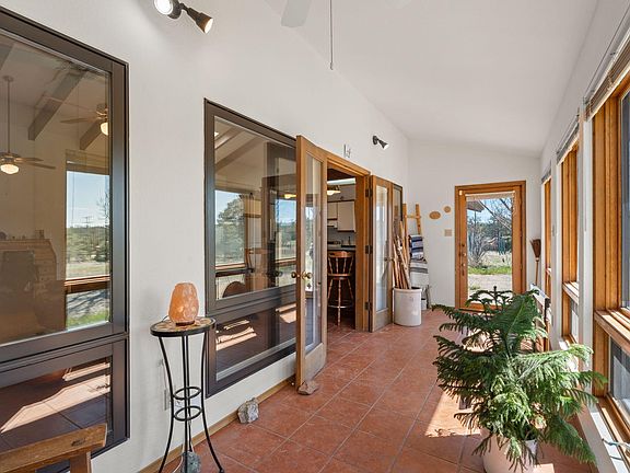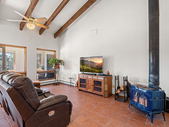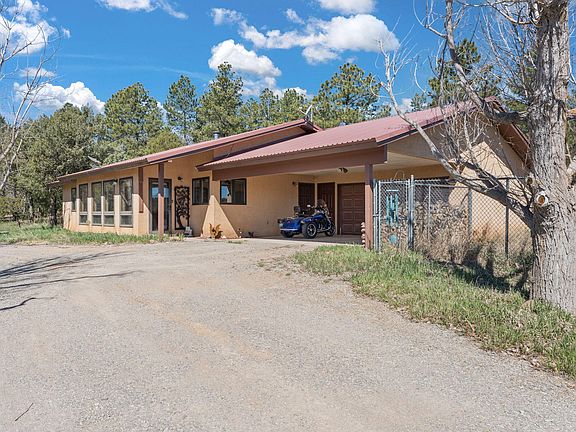 Nestled amongst the Ponderosa Pines, adjacent to the National Forest w/ thousands of acres to explore, this single story mountain sanctuary offers the perfect blend of tranquility & accessibility. Less than 10 miles from I-40, making for an easy commute to ABQ. Benefit from the convenience of being on the Tranquillo Pines water system. Revel in the fresh mountain air & starry nights. Cozy up by the wood stove on those cold, winter nights. Cathedral ceiling adorned w/ rustic wood beams met w/ an abundance of natural light. The 155 sq.ft sunroom serves as a cozy solar passive heat source. A spacious 500 sq.ft oversized 2-car garage & a 400 sq.ft 2-car carport. Home is wired for back-up generator (portable generator conveys with sale). Newer propane tank.