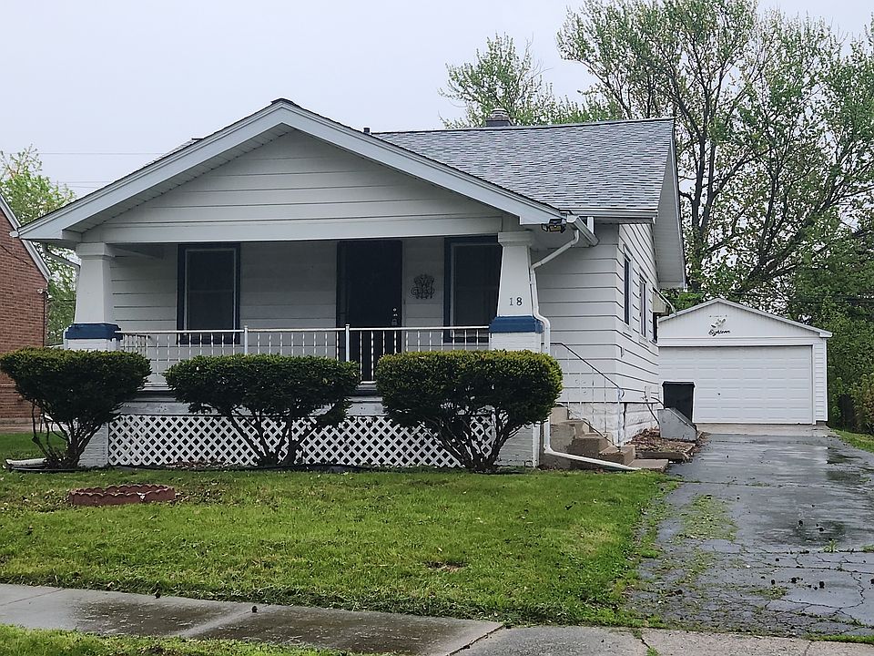 Classic 2-bedroom, 1 bath bungalow in The Elms boasts an enclosed patio that overlooks fruit trees and a fenced yard. Fresh interior paint in most rooms, updated vinyl plank flooring in the spacious living room and cozy kitchen, and a new countertop in the kitchen as well. The full basement is semi-finished with ceiling and floor tiles and painted block walls. There is a humidifier on the furnace. The roof was replaced in 2011, and replacement windows were installed in 2009. There is a 30x18 detached garage with a built-in workbench and is wired for 220.