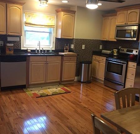 Totally renovated turn-key Dormered Brick Cape has 1900 sq ft of living space & many upgrades!! Huge bright open Eat-In Kitchen w/ Granite counters, SS appliances, Maple Cabinets, Wood floors, & beautiful custom Glass Tile backsplash! Gleaming new hardwoods throughout 1st floor. Features a Formal Living Rm & Dining Rm! Home has 3 FULL Baths! Utilize 1st fl BR as a "Martini Bar" or Family Room or traditional BR. Lg Master Suite includes Jetted-Tub, Walk-In Closet, & Formal Dressing Room/Walk-In Closet w/ Built-Ins! This is a must see!!! 3rd full Bath is newly renovated with Slate Tile & upstairs Laundry!!! 2nd fl BR has built in Murphy bed that will remain at buyers choice. 2nd level has all brand new carpeting! Newer roof, windows, electric panel/wiring, plumbing. Sun Room off Kitchen leads to "Azek" Deck & Lg Brick Patio w/ full length stairs on both ends!! A must see!!! Private Back Yard on a Dead End Road!!! Maintenance-free Brick Exterior! Close to UMASS & easy access to MassPike