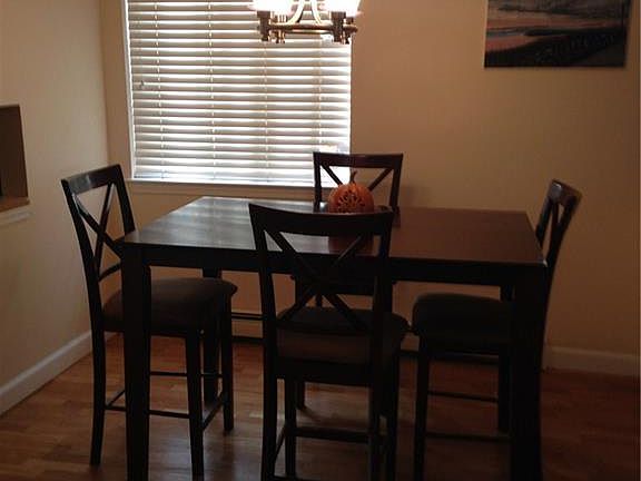 Private entrance to a well maintained one bedroom unit with a large living room, eat-in kitchen, dining room and deck. Washer-dryer in unit. Hardwood floors thru-out, newer gas heater, hot water heater, dryer and newer bath. Second floor. Two months security, good credit only. Complex has a pool and a tennis court. Excellent commuting location. Close to everything. Plenty of parking.