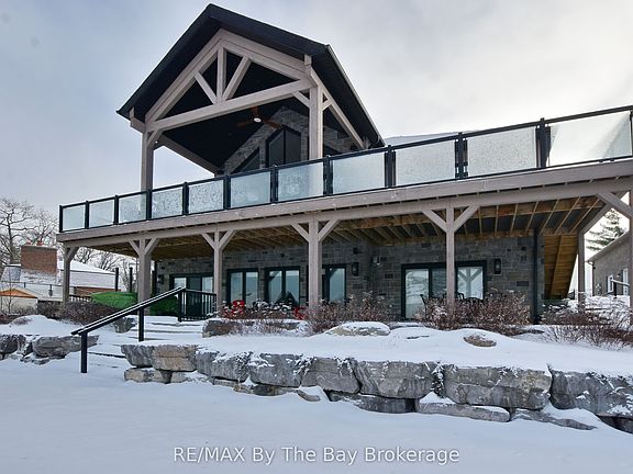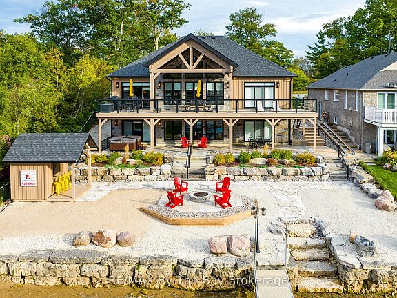 Sitting majestically on one of the most spectacular riverfront lots on the Nottawasaga River in beautiful Wasaga Beach you will find this newly built 4180 Sq. Ft. custom home crafted by professional home builder Father and Son Construction. At every turn of this property exudes quality both inside and out with the exceptional attention to detail and exterior features to make it the ultimate riverfront oasis located on one of the premiere streets lining the prime boating segment of the river and amongst many custom homes. The well thought out main floor design begins with a welcoming entrance with its expansive foyer that takes one to the grand open concept main floor with cathedral ceilings and panoramic windows with stunning views of the river. The gourmet kitchen would delight any chef with its large island with prep area, 6 burner plus grill gas stove and 5 ft fridge and freezer along with custom cabinetry and accent lighting. Adjacent dining area with stunning trey ceilings for all family meals with access to a large covered deck for outdoor entertaining. Grand primary bedroom with spa like ensuite and large walk in closet. Meanwhile additional large 2 guest bedrooms, perfect for guests in the bright fully finished lower level with its 9ft ceilings, in-floor heating and expansive windows offers exceptional river views with a walkout to a backyard entertaining paradise with all custom stone walkways and landscaping. Experience sunset cocktails at the custom built outdoor bar and fire pit area before experiencing all your favourite riverfront activities or a dip in the hot tub. Other features include radiant in floor heating in your triple car garage, security system and so much more. This exceptional one of a kind property sits on a rare 75 ft riverfront lot that provides privacy and a haven for the ultimate riverfront lifestyle.