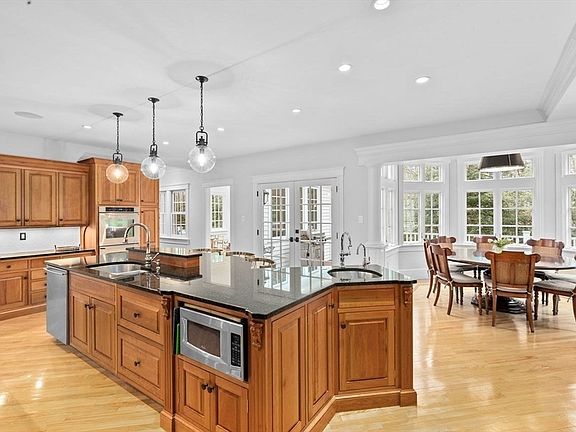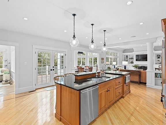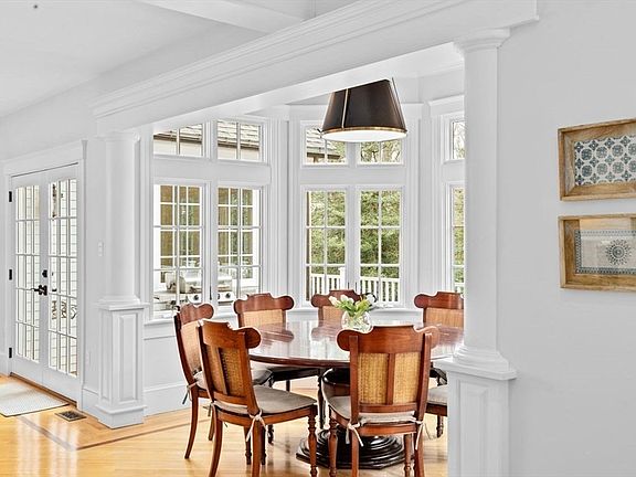 Beautifully sited on over 2 acres in Norwell’s coveted Edgewood Park, this magnificent 6-BR Colonial w/unparalleled craftsmanship & custom finishes has an impressive floor plan designed to effortlessly host large gatherings & also feel “at home”. The professionally outfitted kitchen w/massive island, pantry & octagonal dining area opens to a great room w/FP, built-ins & walls of windows w/access outdoors. The foyer opens to a grand cove-lit dining room, sun-splashed living room & rich home office. A mudroom w/walk in & custom storage, 2 powder rooms & a 3-season room leading out to a brick patio completes the main floor. Dual staircases lead upstairs to a serene primary suite w/vaulted ceilings, custom walk-ins & NEW luxe designer bathroom PLUS 5 add’l bedrooms, 2 full baths, HUGE laundry room, landing & wide hallways. Expansive finished 3rd floor. Stunning architectural details, A+ curb appeal, majestic landscaped grounds & a prime location - this home TRULY sets the bar!