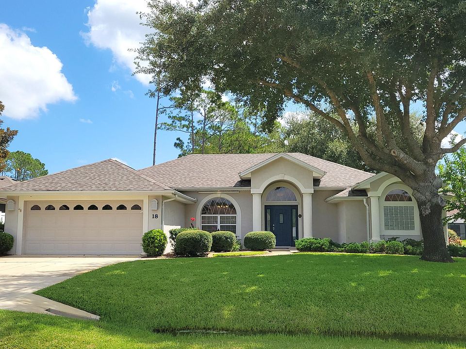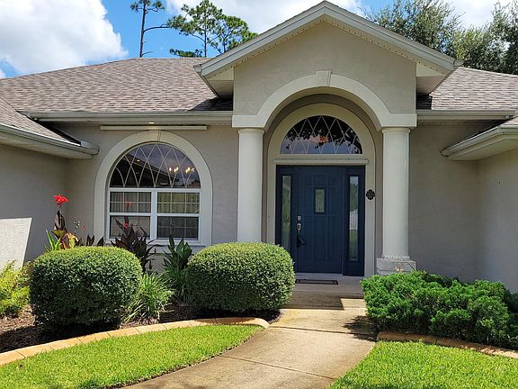 This custom-built block home in Palm Coast radiates timeless elegance and thoughtful design. From the moment you step inside, you're greeted by large picture windows, decorative arches, crown molding, and lighted plant shelves that add charm and sophistication throughout. The formal living and dining rooms offer refined spaces for entertaining, while the tandem garage provides ample room for vehicles and storage. Triple sliders open to a spacious, trussed porch that is both covered and screened, overlooking a lush, privacy-fenced backyard with vibrant green grass — a picturesque setting for gatherings or quiet relaxation. Recent updates include a new water heater installed in August 2025, and a roof that's only 3 years old, adding peace of mind to the home's impressive list of features. Every detail of this home has been executed to perfection, showcasing what true custom craftsmanship looks like. Come experience the style, comfort, and beauty this stunning residence has to offer.