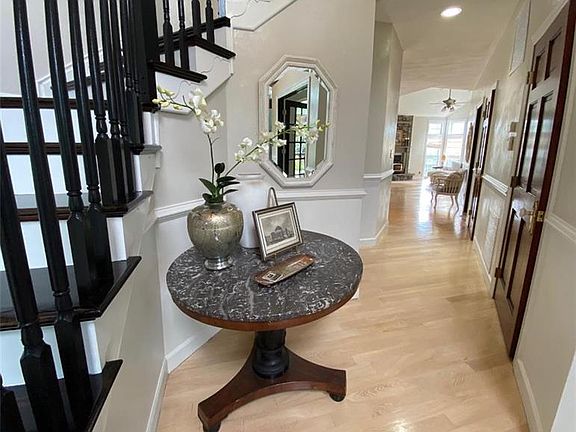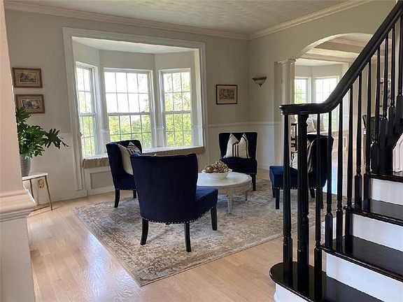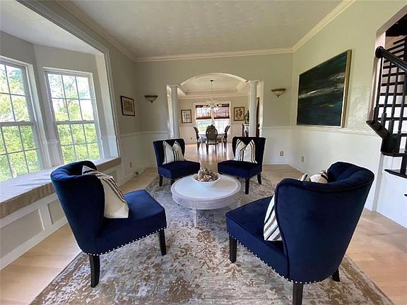 Custom Alba brick home in a private setting on almost 2 acres - Secluded yet within 1 mile of Rt 19 and Interstate 79 . Bright open floor plan . New flooring . Open two-story foyer with grand staircase . Gourmet kitchen, granite counters, stainless appliances, double ovens, center island . Family room with vaulted ceiling, stone fireplace, back staircase to upper level . Sunroom with skylights, access to the maintenance free deck . Den with french doors . Formal living room and dining room joined with columns, coffered ceiling, bump-outs . Master suite w/sitting area, private bath, two walk-in closets, dimensional ceilings . HUGE finished lower level with theater room, wet bar, fireplace with heatilator, full bath, exercise room, 10' ceilings, walk out to lower level concrete patio . 9' ceilings main/upper levels, plaster walls, solid pine doors . Dual zone HVAC - one set is approx 2 years and the other set is new July 2020 .