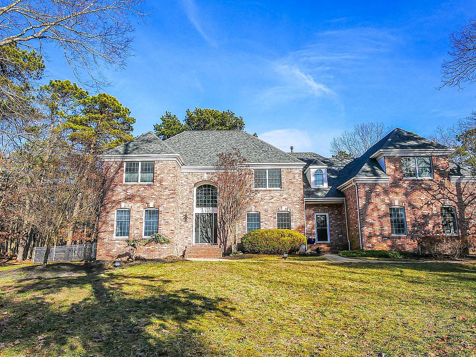 Welcome to 18 Elderberry Drive, Medford’s most prestigious enclave of Estate Homes. Custom built by Gary Gardner, this traditional home is located in one of the most sought after locations in Medford. Magnificent 5 bedroom, 3.5 bath home with every amenity possible. Open two-story foyer leads you to a sunken in formal Living Room with custom woodwork, hardwood flooring, fireplace, wet bar and multiple windows. Formal Dining Room with hardwood flooring, extensive woodworking and large box window. Rear of the home features a wonderful newly renovated kitchen with large island, upgraded custom cabinetry, stone backsplash, stainless steel appliances, large pantry and large dining area which leads you to the EP Henry patio. (With retractable awning). Adjacent to kitchen is a stunning two-story Family Room with hardwood flooring, Brick surround fireplace, and custom windows with shading. Also on the main level is a large home office/Den with access from Family room and living room. Office/den has access to the wet bar area as well. Upper level consists of 5 bedrooms and huge laundry room (5th) with full size washer and dryer and storage. Laundry room can easily be converted to a 5th bedroom. Large master bedroom with vaulted ceiling, walk-in closet, master bath with double sink, private commode area, soaking tub and walk in shower. Three other bedrooms are serviced by a hall bath and ensuite bath. Full basement with storage and game/recreation area. Beautiful backyard with inground Gunite pool, EP Henry patio (with retractable awning) Blue stone pool surround and walkways. Other features include: Gas heat, Central air, three car attached garage, new roof (2023), private culdesac, powder room on main level, ample parking, homesite at end of culdesac for maximum privacy.
