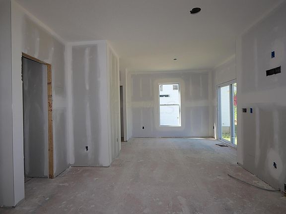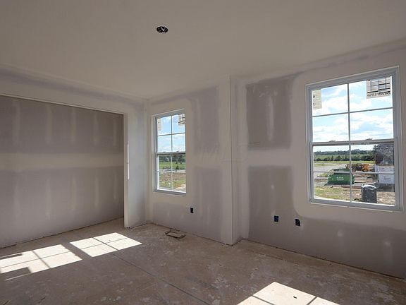 This 3-bedroom, 2.5-bathroom, 1,972 square foot home showcases a midnight blue vinyl siding and a farmhouse-style exterior. As you enter from the covered front porch, you'll be greeted by 9' ceilings and a flex room. The main living area is where you'll find the family room, kitchen, and dining area all flowing together. The kitchen boasts upgraded gray cabinets, quartz countertops, stainless steel appliances, an upgraded ceramic tile backsplash, and a pantry. You'll find a mud room, a powder room, and a large coat closet next to the 2-car garage entry. Upstairs, you'll find a loft, the owner's suite, 2 secondary bedrooms, a hall bathroom with a double-sink vanity, and a linen closet. This home also features a full basement.