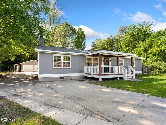 This fully remodeled 3-bedroom, 2-bath home offers modern living with a touch of comfort. Featuring granite countertops in a stylish kitchen, a spacious laundry room, and ample natural light throughout. The home sits on a large lot with an extended driveway leading to a detached two-car garage, perfect for use as a workshop. Located in Havelock, this property provides easy access to Cherry Point Air Station, making it ideal for military families or those seeking a convenient, updated space to call home.