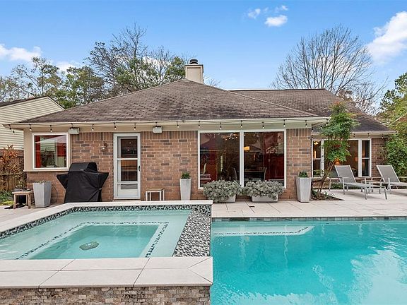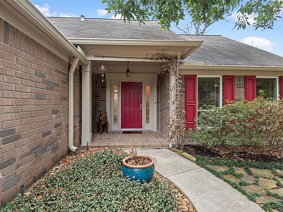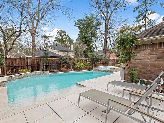 Hard to find - Exceptional one-story home with pool/spa close to The Woodlands Town Center. This meticulously maintained/upgraded 3-bedroom, 2-bathroom home is perfect for entertaining. Living room with gas-log fireplace. Dining room, open to the kitchen & living room, offers a fabulous view of the amazing pool. Stylish updated kitchen boasts quartz countertops, glass backsplash, high end Bosch stainless steel appliances with gas cooktop and wine fridge. Primary bedroom with impressive spa-like ensuite features quartz countertops, double sinks, oversized shower, large soaker tub & high-end fixtures. Enjoy relaxing in the incredible backyard oasis with its beautifully designed pool surrounded by an easy-care durable porcelain paver deck. Tile and engineered wood flooring throughout. Washer, dryer, 2 refrigerators & wine fridge included. Two car attached garage. Sprinkler system. Move-in ready! Quiet cul-de-sac street. Quick access to I-45, Hardy Toll Rd. & the Grand Pkwy. Welcome Home.
