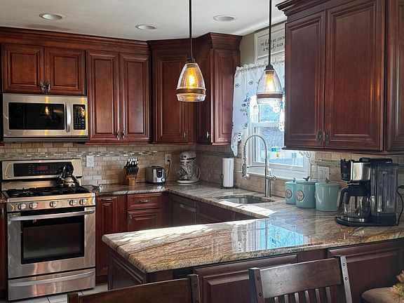 4-bedroom, 2-bath home located in the desirable Ramtown section of Howell! This spacious home boasts an open floor plan and many modern upgrades The bright, upgraded kitchen features 42-inch cabinets, stainless steel appliances, a counter bar w/ pendant lighting & granite countertop, complemented by ceramic tile flooring. The living room offers gorgeous hardwood floors, creating a welcoming space for family gatherings. 2nd floor, you'll find a spacious master bedroom w/ luxury vinyl plank (LVP) flooring & two closets, as well as 2 additional bedrooms & a full bath. On the first floor, there is a 2nd master bedroom w/ a huge walk-in closet, which can easily be converted back into a family room and an additional bedroom. A brand-new full bath and convenient laundry area complete the 1st. level. Additional highlights include a newer roof, a brand-new AC and furnace, & a 50-amp exterior plug, perfect for RV or boat parking w/ the option to convert it for an electric car. The home also features a 2-car garage and a fully fenced yard with a paver patio & fire pit area. Don't miss out on this exceptional home.
