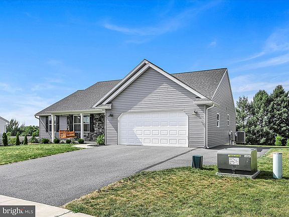 This charming 1-story stylish home built in 2020 with vaulted ceiling & open floorplan, vinyl plank looking flooring in the foyer extends to the main living areas, the kitchen, featuring new appliances, and pantry, sunny dining area with sliding glass doors to the 12x16 deck w/lighting... with views of a privacy tree line & access to a nice back yard. The spacious living room boasts a fireplace with floor to ceiling brick surround and wood beam mantel. Tucked to the back of the home is a large owner's suite, an expansive closet, and a private bathroom with shower and double bowl vanity; the laundry room & 1/2 bath is conveniently around the corner, and on the opposite side of the house is 2 bedrooms and a full bathroom, this unique home sits on a .34 acre lot with a 2 car garage. Located minutes off of Route 422, Minutes from PA Turnpike too. Eastern Lebanon Schools!