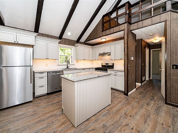 Spectacular A-Frame home with 4 bedrooms, 2.5 bathrooms. This home sits on 1.1 acres in the Village of Le Roy. There is also a two-car detached garage with 2 new garage doors. This home also has 6 new windows, new heating, plumbing and central air. Many other updates include flooring, new kitchen and cabinets, as well as updated bathrooms. Appliances stay.