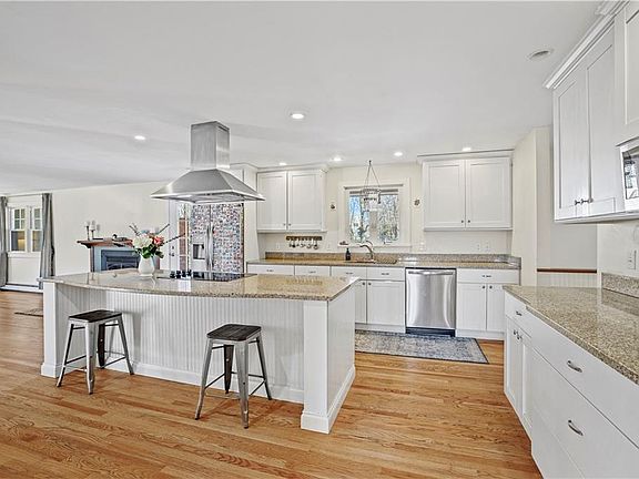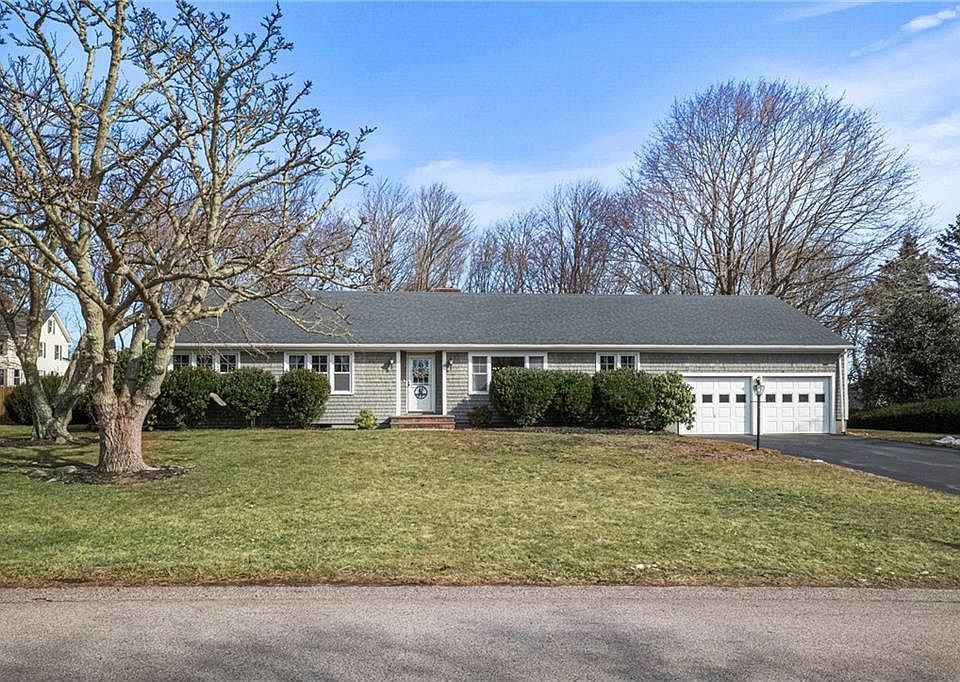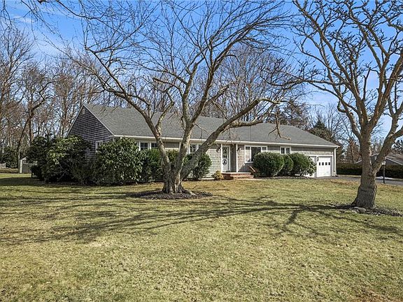 This thoughtfully designed ranch offers single level living and space to entertain. The half acre lot is tucked away in Boro Heights, a small neighborhood off of East Main Road. An attached two car garage with a mudroom, half bath, and laundry are a perfect place to unload after beach days. The updated kitchen features an oversized island, plenty of storage and an open floor plan to the dining room with a gas fireplace. Hardwood floors throughout the main living areas. The bright sunny living room is an inviting space for guests as they enter through the front door. A large deck with an outdoor fireplace off the dining room. The primary bedroom includes a private bath. Two additional bedrooms with a second full bath. The nearly 2,000 square foot basement could be finished for additional space or used for storage.