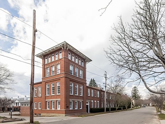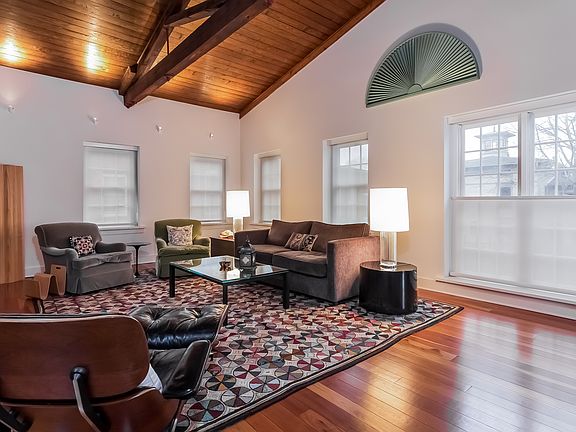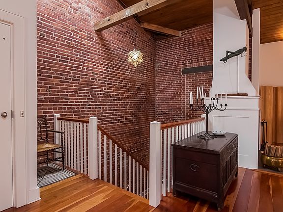 Situated on historic Fair Street in the unique, sought after Foundry complex just steps from the Guilford Green with its shops and restaurants is townhouse living at its best. High ceilings, period details and modern luxury throughout. Enter the two level unit to a gracious foyer with private elevator (and stairs) off of which is a large, private office/den with a half bath. The upper level opens into an enormous (29'x19') great room with a soaring beamed ceiling, beautiful cherry floors, an exposed brick wall, a fireplace and large windows on three sides assuring lots of natural light. An adjacent spacious balcony provides additional outdoor living space. The bright, eat-in kitchen also with cherry floors has top of the line appliances and a seating area to keep the chef company. The master bedroom has a luxurious, ensuite bath with double sinks and a large walk-in closet. The second bedroom has access to a full bath. The washer/dryer are also located on the second floor. Immaculate, move right in condition. Considered by some to be the premier unit in the complex.The unit has an attached one car garage and there is another covered parking space nearby.