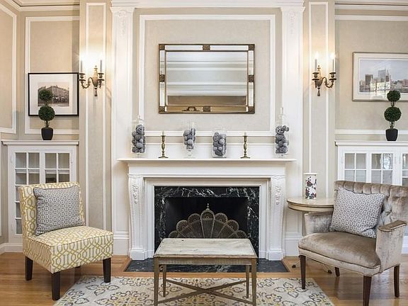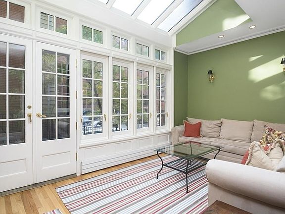 Ideally located in the heart of Back Bay, this wonderful family home offers four-plus bedrooms, four-and-a-half bathrooms and lovely living and entertaining rooms filled with elegant details. The parlor level consists of double living rooms plus a sky-lit family room with built-in media center connecting to a private deck. The garden level includes the updated kitchen and spacious dining or family room with French doors that open to the home's patio. An additional family room or den with custom built-ins shares the second level with the master suite that includes an extra large custom walk-in closet. Four family or guest bedrooms comprise the two levels above. Exceptional features of this home include a total of six fireplaces, sophisticated molding details, a sky-lit central staircase and the bi-level roof deck offering panoramic city views. Recently updated systems complete this exceptional offering.