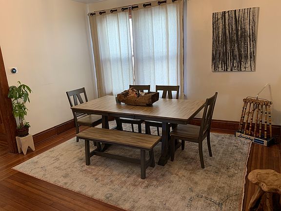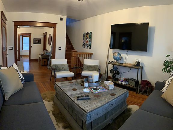 18 Fairview Ave, Hudson NY | Fully furnished, mid-term rental available! Starting 11/1/2024 for an annual lease. Four story town house style unit part of a 2-unit property. Basement has a sleeper sofa den with a tv, small workout area, and laundry room. The main floor has a large kitchen with stainless appliances, spacious dining room and half bath as well as a 100+ square foot living room. There is also a small coat room and access to the front porch. Upstairs you will find 3 large bedrooms with queen beds and their own clothing storage as well as a full bathroom with tile throughout. On the finished top floor there is a studio bedroom with a half bath and desk. Units includes off street parking for two, Laundry, mowing, snow removal, water, sewer. Tenant will cover gas/electric. Removal of our furniture and storage can be accommodated if necessary.