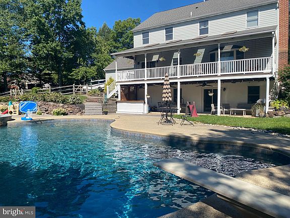 If you are looking for the most serene space, while still enjoying an entertaining haven, this is the home you must see! Enter a long driveway with long-distance views and find your country home at the end of the drive with a mature tree line ensuring ultimate privacy. Natural features are part of this beautifully landscaped spot, complete with perennial gardens, an enclosed raised bed vegetable garden, and fruit trees to the boulder wall by the garden beds. The huge outbuilding has an additional two bays for parking, another bay for a workshop area, propane gas heat plus radiant heating in the floor. There is a second floor accessed by pull-down stairs and built with structural trusses for future expansion. Your oasis begins with the heated, salt water pool (2016) and spa, beautifully crafted with hardscaping that has one area with footers for a future pavilion. The shed nearby has electric (not currently hooked into the system by the pool area) and an overhead door, plus a standard door for easy access. You can also relax and entertain guests at the bar area with a built in sink on the lower patio! For an even better view of the yard, head up to the covered deck with its comfy porch swing that adjoins the kitchen on the main floor. Once you have toured the gardens and yard area, it's time to come inside and see all of the custom feature walls and built-in areas throughout the home. The living room is currently used as a home office space with furniture that can be easily removed without disturbing the wood floor. Dining with a crowd is easy with built-in cabinets, an ice maker and beverage fridge, and plenty of room for a large dining room table. A cozy night awaits in the family room with a wood-burning fireplace, built-in shelves, and a large bay window overlooking the deck and pool area. Enter the kitchen with newly painted, upgraded cabinets and new backsplash, stainless appliances, a center island, and granite counters. Easily access both the covered deck and dining room from the kitchen for easy living and entertaining. The mudroom entrance from the garage features a drop zone for backpacks, jackets, and more! A treat for your furry friends includes a pot filler faucet for the water bowl and pull-out shelving that holds 3 bowls for food, plus a pull-out bin for food storage. Need to give your pets a bath? Head out to the 2-car garage (with mini-split heating and cooling) and use the custom dog bath area. Another drop zone here, plus loads of shoe storage make this a very organized home to house all your things! The second floor of this home features a large primary bedroom with a separate closet for dressing area and storage, an updated full bath, and a new custom closet with built-in shelving and drawers! For fast laundry days, the washer and dryer are located here to make wash day less of a chore. The hall bath services the other 3 bedrooms. The 4th bedroom has been converted to two bedrooms. This can easily be changed by the removal of one wall or leave it as a 4th bedroom with a separate study area! Now head to the finished lower level and walk out to the covered patio with bar and hot tub. Ready to relax? Enjoy a movie while you sit under the "starlight" ceiling, plus the game or media area is spacious. A convenient powder room and exercise area for privacy while working out is also found here, along with a built-in counter featuring cabinets and beverage refrigerators. You will want to see this home quickly! This is an ideal location for commuting with the Lansdale and Quakertown turnpike entrances nearby. Add in shopping, excellent schools, farm markets, and local parks. You will find this is a home to meet all needs and all seasons. You really can have it all! Plan your visit today!