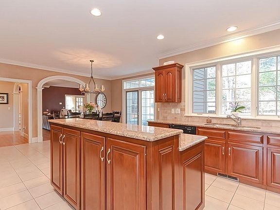Like a castle on the hill, this quintessential home has everything! High end craftsmanship includes arch doorways, wainscoting, dental molding & mantels. The open, gourmet kitchen has granite counters, backsplash, Thermador double oven & induction cooktop, beverage center, eat in area with a formal DR nearby. Featuring HW floors through the elegant LR, coffered ceiling study, bright sun room & dramatic FR, theres plenty of space for everyone! Upstairs are 5 BRs including a lavish master suite with a walk in & cedar closet & a humongous bath with soaking tub & double vanity. 4 addt BRs with a full guest suite & Jack and Jill bath. Theres even more SF in the bonus lower level with a kitchenette & granite bar top. Outside a staggering stone fireplace & bluestone patio that stretches the length of the house is ideal for entertaining! 1.15 serene acres boasts beautiful gardens & shrubs & the park-like setting abuts cons. land, hiking trails & state parks. Close to the T & Rtes 495/90/9.