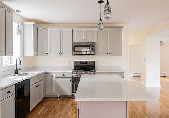 Need lots of room for your family? Space to roam inside a priority? Multiple folks working from home these days? This 11 room Cape/Colonial checks all the boxes! Six bedrooms and 3 new bathrooms for you. All remodeled throughout, so just buy it, move in and unpack! First floors has an open concept with a new granite/stainless/grey cabinet kitchen with island open to the family room and a dining area w/ sliders to the deck & patio, open dining room, fireplaced Living Room, full bath, & convenient bedroom/office, plus 1-car attached garage. Upstairs has 5 BRs including a Master suite with soaring ceilings, two huge closets, gas FP, and tiled full bath. The other 4 bedrooms are all good-sized, there is an open area for a study or maybe the kids game space, & convenient 2nd-floor laundry. All new systems, including Viessman hi-efficiency 4-zone gas heat & hot water, 200 amp circuit breakers , new roof, easy-care vinyl siding. 2-story shed for storage. Please check out the Virtual tour !