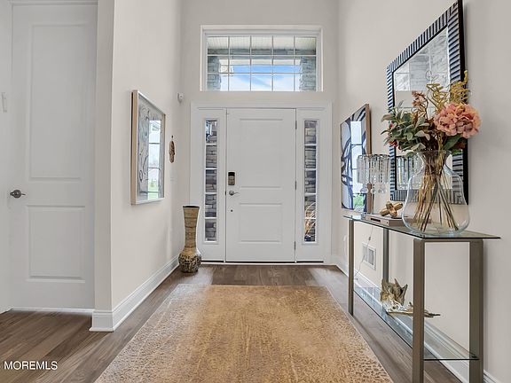 Welcome to the exquisite Binghamton model in the highly sought-after Regency at Freehold, where luxury meets comfort in a vibrant 55+ community. This property features a stunning primary suite, guest room, and office, 2 baths, and offers an open concept living space accentuated by soaring 10-foot ceilings, elegant recessed lighting, and custom moldings throughout, creating an atmosphere of sophistication and spaciousness. Additionally, this home boasts a custom addition over the garage, providing a convenient walk-up storage room.