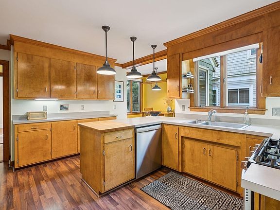 This home offers 3 spacious bedrooms and 2 full bathrooms, plus a versatile bonus office space. The interior blends timeless charm with modern comforts, featuring classic built-ins and generously sized rooms. The large, eat-in kitchen combines contemporary convenience with retro details, creating a unique and functional space.