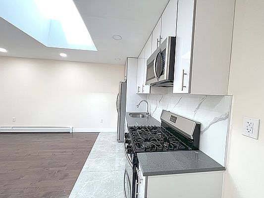 Welcome to the quiet side of Cypress Hills. This gut renovated 2 bedroom, 2 bath with eat in kitchen with a primary bedroom with its own windowed bathroom. The fully renovated kitchen has all new stainless appliances(fridge, oven & dishwasher). Situated on the 2nd floor on this private 2 family home. Just 1 block away from the subway and busses. Close to stores, shoppes, restaurants, park, school and places of worships.