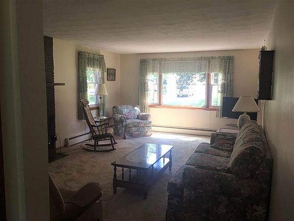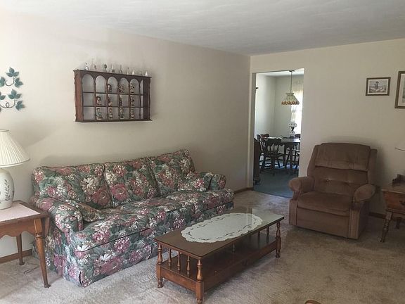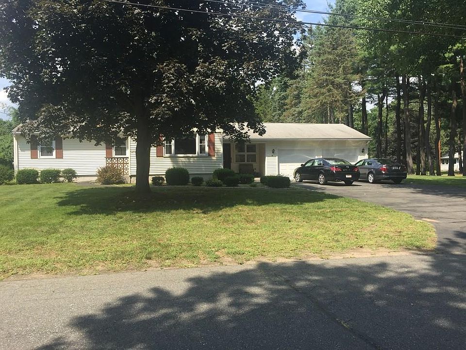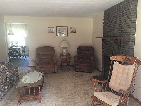 Nestled on a half an acre corner lot, this well maintained, spacious 3 Bedroom ranch has much to offer. Large breezeway has access to the garage and backyard. Eat-in Kitchen with laminate flooring and storage closet. Kitchen also leads to basement. Large living room with fireplace and picture window looking over the front yard. Hardwood flooring underneath living room and all three bedrooms! Updated furnace. Basement has workbench area, washer and dryer hookups and extra bath. Two car garage. Great back yard for entertaining. Shed to remain.