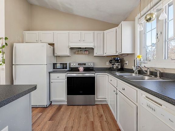 This stunning single-family raised ranch is ready for you! Located in a quiet cul-de-sac less than half a mile from the bike path and just minutes from Route 195, it offers both convenience and charm. The front yard, paved driveway with ample parking space, and spacious 2 car garage welcome you home. Inside, enjoy the open-concept kitchen and family room, as well as the beautiful wood-look vinyl plank flooring throughout. The bright, open floor plan is perfect for entertaining, with a kitchen island, three bedrooms, a spacious bathroom with laundry. The finished basement has potential for a bathroom or added bedroom, office, family room. The home has recently been equipped with owned solar panels for energy efficiency, and five ductless heating and cooling zones for year-round comfort. The backyard has been cleared doubling in size with endless possibilities. The fence offers privacy while the patio and the deck, accessible from the dining room, are perfect for outdoor relaxation.
