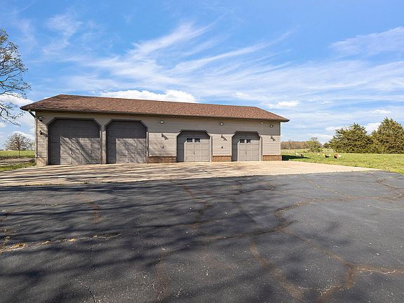 One of a kind opportunity right here. The sellers have a place under contract out of state so they must sell quickly. This amazing property is only 30 min from Springfield, it has over 7 acres of beautifully maintained land but super close to town and Walmart. This huge 4350 square foot house has 4 bedrooms, 5 bathrooms, 2 Living areas, 2 dining areas, it is 2 stories, a built in sauna, a craft room, a storm shelter, granite countertops, a large kitchen/living combo, his and her closet's, and so much more. The outside is just as impressive. There is a large 2 car attached garage, a hot tub, a 30 foot above ground swimming pool, and the coolest oversized detached garage you have ever seen. 6 garage doors with 9 potential parking spaces, a John Deere room, RV storage, a gym room, or whatever else you desire. Also, there is a built in generator that stays, the pool table stays, and a nice functioning chicken coop with fencing so bring your chickens because NO restrictions. Start your own little hobby farm. Seller has also recently painted all the garage doors and the roof is only 2 years old.