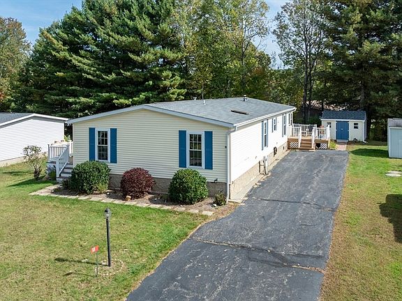 Absolutely gorgeous manufactured home (60x28) at Brookfield Meadows 55+ community. 3 bedrooms, 2 full baths, kitchen loaded with cherry cabinets, formal dining area, breakfast nook, 2x6 construction, 4 season heated room with gas fireplace (stove) on thermostat. TONS of improvements - windows, furnace, hot water heater and central air done in 2023, new side deck with composite wood, newer flooring throughout. Generac generator 2018, Master bath has double vanity, huge linen closet and skylight, oversized living room with vaulted ceilings and tons of natural lighting. Storage shed with new roof and electric, patio sitting area out back with room for small garden. Lots of beautiful mature plants and flowers.