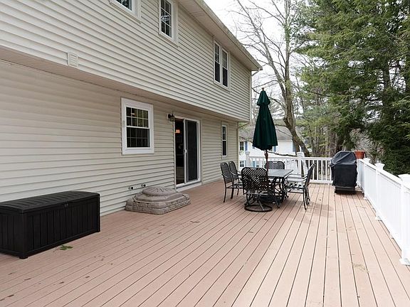 Stately & Welcoming! Brick fronted Colonial exudes charm & warmth*Gleaming hardwood greets you*Phenomenal updates & upgrades made continually over years including younger linen glazed Kitchen w/gorgeous granite, stainless appliances & open wall to the dining room for that GREAT ROOM look & feel w/OPEN FLOW*Family Room w/cozy fireplace*All baths were renovated to a very upscale level*Master Suite w/fireplace, huge closet area & bath with double sinks, large vanity & unreal tiled shower w/thick glass door*Great sized bedrooms*Hallway bath renovated w/oversized double vanity and lovely tub w/tiled surround*Finished, updated room in lower level makes the perfect office or separate play room*Incredible huge composite deck built in 2011 along w/gorgeous patio & rebuilt retaining wall*Pleasing neighborhood w/close proximity to the picturesque town center*