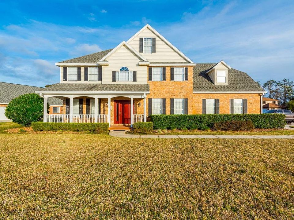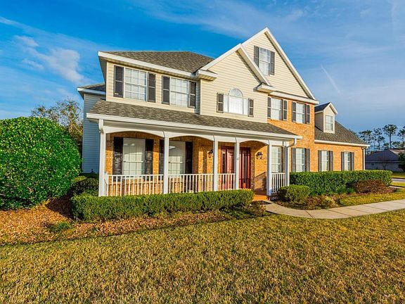 Step in to this inviting home in Hunter's Ridge with over 3,000 SF living area. The downstairs is open and light and has wood look tile throughout. The large, eat-in kitchen has lovely white cabinets, black counter tops and stainless steel appliances. A half bath and formal dining area are just off the kitchen. 5 bedrooms and 3 baths are upstairs. Each bedroom has its own bathroom access.The ample pool area is ideal for entertaining or relaxing in the Florida sun!