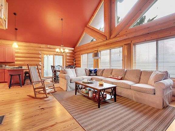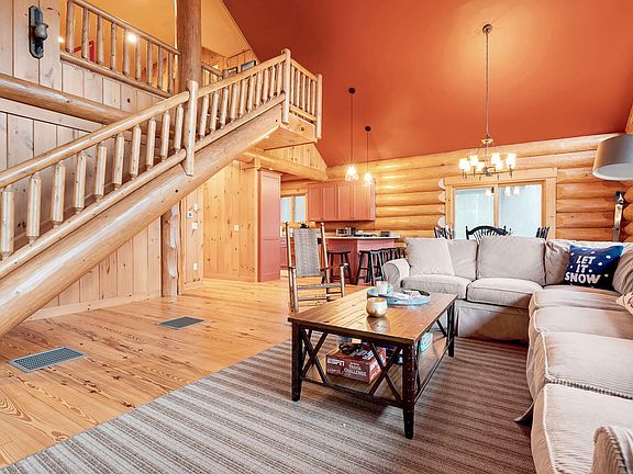 Stunning British Columbian Log Home located in the Timber Village neighborhood just 5 minutes to the slopes. Featuring a dramatic great room open to the kitchen and dining area boasting a cathedral ceiling and beautiful log walls. A perfect gathering spot for friends and family after a day on the slopes. The first floor offers a primary bedroom ensuite with a full bath, tiled shower and a walk-in closet. An open staircase leads to the second floor which features a family room, two additional bedrooms and a full bath. A welcoming covered porch provides cover from the weather to enter into the spacious mudroom and another covered porch is conveniently accessed off from the dining area. Offered furnished.