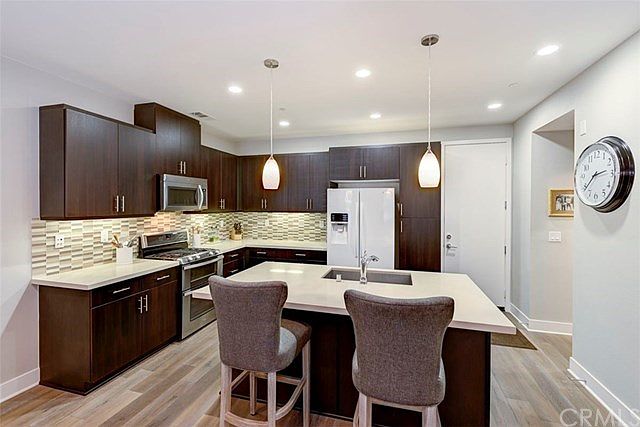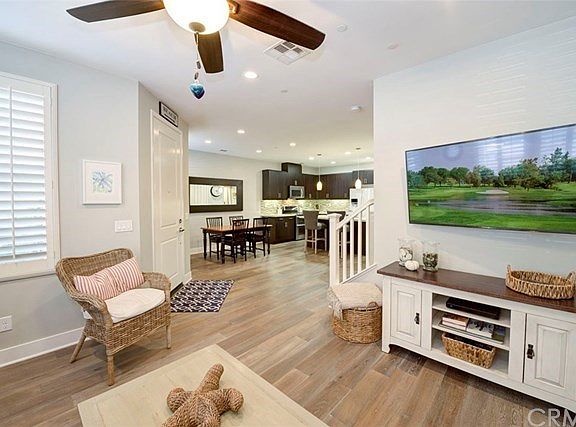 Wonderful Shea townhome in the popular master planned community of Sendero, very close to Ladera Ranch. Tastefully upgraded throughout including beautiful wide-plank engineered wood flooring, upgraded neutral carpet, upgraded baseboards, custom paint, plantation shutters, light dimmers, and ceiling fans. Gourmet kitchen opens to dining area and features luxurious quartz counters, generous center island with breakfast bar, custom glass subway backsplash, pendant lighting, upgraded cabinetry, stainless steel sink and appliances, including built-in range with double oven, microwave, and dishwasher. Adjacent living room is pre-wired for surround sound speakers. Serene master suite has generous walk-in closet, master bath with upgraded flooring, dual sinks, quartz counters with glass subway backsplash, plus oversized shower with custom tile surrounds. Secondary bedrooms are generous and feature ceiling fans, and one features a walk-in closet. Convenient upstairs laundry room and loft in hallway for additional guest sleeping space. Enjoy the view from this oversized, enclosed patio with outdoor seating area - one of the larger patios in the development. Close to Sendero's fabulous community amenities including the Ranch House with gym, The Outpost resort pool & outdoor bar, Sendero Farm, Sendero Field with 15 acres of recreation space, Adventure Play Park, hiking trails, & residents also have access to the new Hilltop Club in Esencia. Must see to appreciate this fantastic home!
