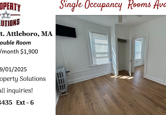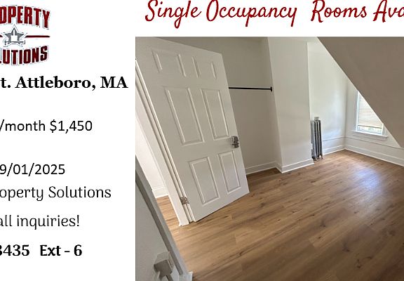 All units are private and secured. Bathrooms are located on the 2nd and 1st floors. Living room, bathrooms, and kitchen are shared living spaces. Located just a few blocks from downtown Attleboro. Within walking distance from Train Station, bus stops, shopping plazas and laundromats. We have Single Occupancy Units in a traditional 3 story townhouse property, with 7 units on each side. Each side has 2 full bathrooms and standard kitchen equipped with all appliances. We love furry friends, but owner has strict No-Pet Policy, as well as No Smoking indoors. Each unit has a wall mounted Roku TV and all tenants enjoy free Wi-Fi. The building is secured with code access door locks, and the property is monitored frequently by Property Solutions staff and security cameras in common areas and outside. Front and backyard space to enjoy during the nicer weather w/ 2 sets of outdoor furniture. All applicants must complete an application process, which includes proof of income and background check.