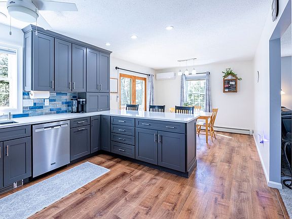 An absolute delight this sun filled 3 bedroom, 2 bath home located on a corner lot in peaceful neighborhood. Built in 1997 and recently updated this home centers around a renovated eat in kitchen that opens to a dining area with a full glass door to the deck overlooking the surrounding trees and backyard. The pantry located off the kitchen allows ample room for extra supplies and laundry with an office/den and living room to complete the main floor. The second floor with remodeled full bath, primary bedroom and two additional bedrooms makes for a cozy lifestyle. The lower level provides a family room with woodstove, storage and mechanicals. From the walkout basement to large driveway area that has plenty of room for vehicles and play with a detached 2 car garage and large storage above. With additional out buildings there's plenty of room to store equipment without taking room from the 24 x 24 garage. This home sits on a private half acre corner lot with plenty of open lawn and tons of sunshine. Delayed showings until the Open House scheduled for Saturday April 5th from 11a-1:30p.