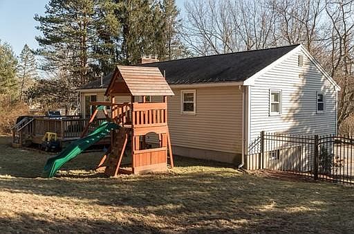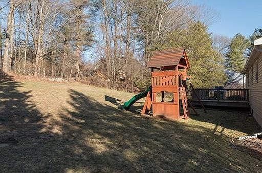 Beautiful move-in ready, affordable 3 bedroom home in quiet neighborhood less than 3/4 miles to Neary and Trottier schools (grades 4-8). Gleaming hardwoods throughout main level, with open kitchen and living room with cozy wood burning fireplace. Kitchen offers gas stove top, large eat-in area, stunning black granite counters with white subway tile backsplash and cabinets. Slider leads out to large deck and private fenced in backyard, with 3/4 acres of land, including private woods. Renovated bathroom has a granite topped vanity, tiled shower and floor, and is conveniently located next the three bedrooms. Walk down to the lower level for a multipurpose room with its own wood burning fireplace. Space to add another bathroom and equity! Can be used as a family room, game room, and office/study. Insulated by MassSave. Separate exterior door acts as a good sized mudroom. Newer septic, roof, windows, gas tankless water heater, gas furnace, AC unit, aluminum fence, swingset.
