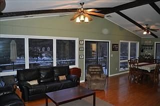 Contemporary and sleek this 4 bedroom, 3 bath home with privacy on 1.1 landscaped acres w/in-ground pool. Architecturally unique it features a floor to ceiling fireplace in living room w/cathedral ceilings, hardwood floors, wrap around deck, central air, hydro air heating/cooling system, game room & legal apartment as an added bonus. Use such apartment for income or summer kitchen would certainly compliment the pool area for entertaining.