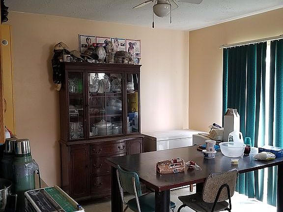 There are 2 sheds 1 metal 9x13 and a new wooden one 10x14 which has a piece of plywood attached to it which completes the fenced in yard.