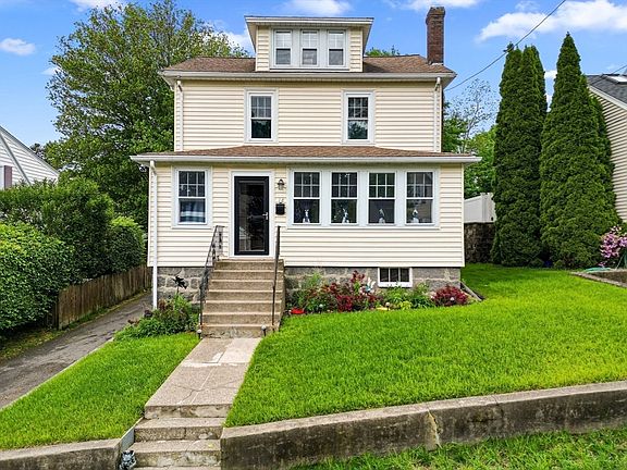 Location, location! Quiet side street close to all! Quick hop to Legion & Libby Fields as well as King Oak Hill (w/ playground/tennis/walking paths), this well-loved home in Academy school district is an equity opportunity! Many new updates inc windows, siding, exterior doors & stainless appliances! Functional & cute porch leads to open living room w/ a versatile floor plan. Fireplaced living room w/ original 'sailboat' windows opens to dining room w/ built ins & charm! (currently used as another family room). Eat-in kitchen is light & bright w/ picture window overlooking fields, Town Hall & beyond. Full butlers pantry is the perfect opportunity for storage or future upgrades/bathroom. Upstairs has 4 full bedrooms, one of which has walk-up attic access *and* bonus sunroom access. Unfinished basement is dry & perfect for your next workshop or gym. Backyard is private, fully fenced and well-maintained w/original garage. Minutes to train to Boston, highways, shopping, recreation & more!