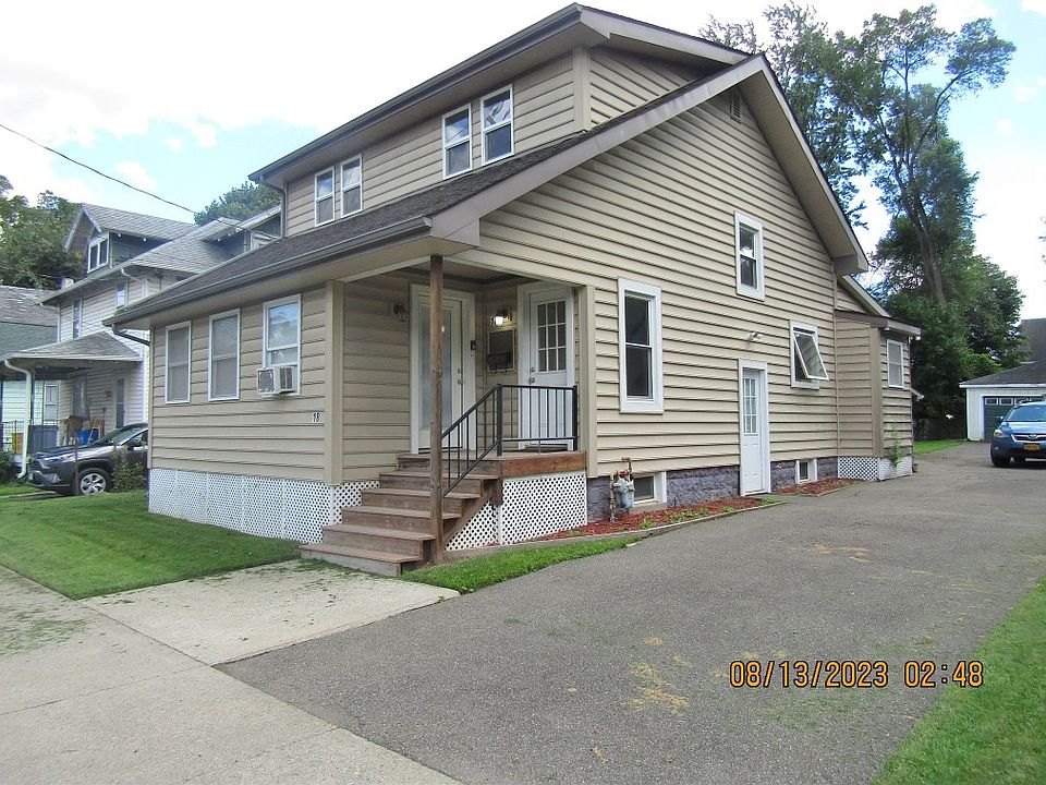 Move in ready This two family has a spacious first floor unit with bright airy rooms, natural woodwork and hardwood floors. Updated bath and kitchen including newer stove. First floor laundry and tons of storage. There is a good sized yard, a covered patio and a large attached storage shed. The second floor unit has one bedroom an updated bathroom with a large walk in closet and gleaming hardwood floors. This unit has all electric heat and tenant pays own utilities. Near to bus route, shopping and amenities. This property would be an excellent as an owner occupy or an investment and is an excellent value.