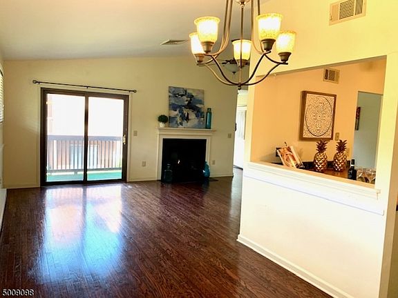 Upper end unit Dearfield model in desirable Oak Knoll Village, Blue Ribbon School System!! w/ over 1200 SQ feet of luxury living space. Wood floors from entry foyer, living & dining room, a wooden fireplace in the living area w/ sliders to the deck, newer appliances in the bright and airy kitchen, 2 great size bedrooms The master bedrooms is huge w/ 2 walk-in closets, sliders to a balcony & a master bath. Another full bath w/ granite counter vanity across from the 2nd bedroom & a 1 car garage finishes this lovely unit.With easy access to RT 78 and 22