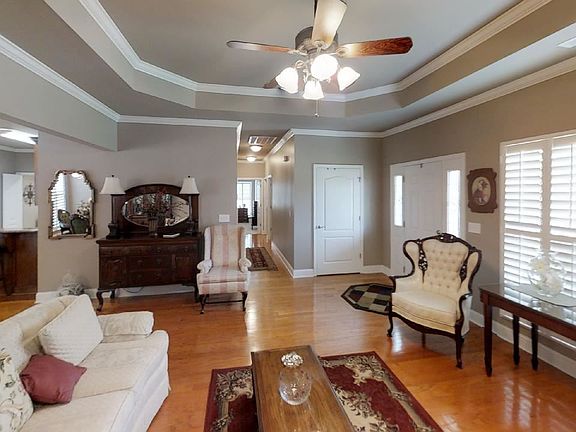 Beautiful Patio Home wood flooring, crown molding, very large walk-in closet in Master Bedroom, open floor plan, 2 trey ceilings, custom lighting, jet tub, plantation shutters, corner lot, gas log fireplace, eating bar, double garage and more. This home features wide doors and appears to be handicap accessible.