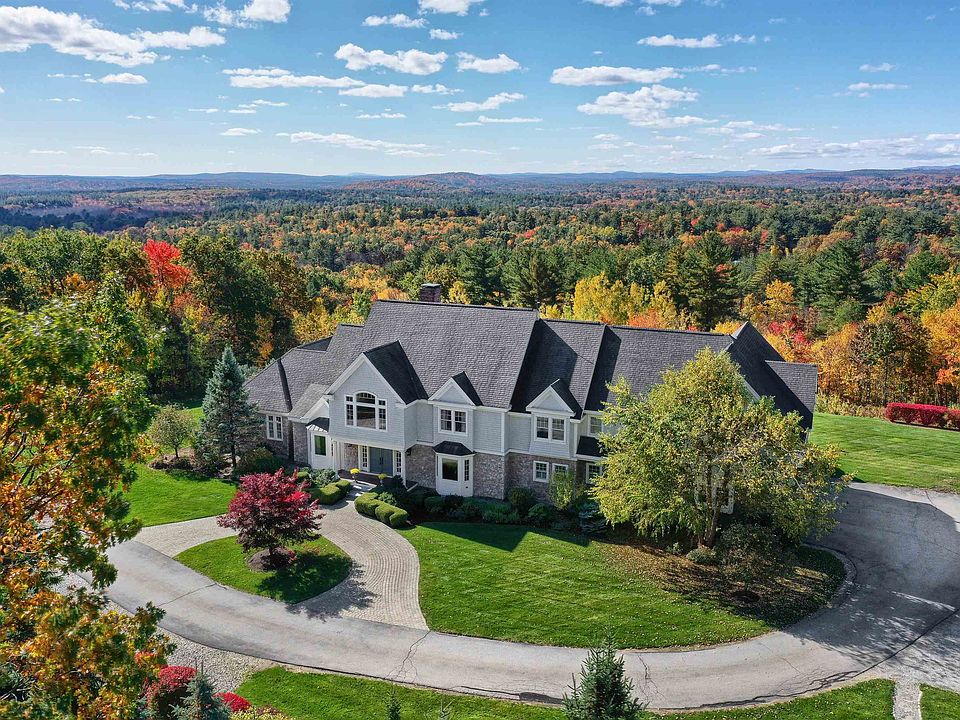 UNSURPASSED VIEWS... Exquisite custom home situated on over 7 acres, privately set at the top this small neighborhood cul-de-sac, surrounded by breathtaking mountain views. The property is sure to impress with only the finest details throughout, built by Morin builders. Stone walls and majestic trees lead to this classic New England style home designed to capture its surroundings. Step into the foyer flanked by a banquet-size dining room and formal living room or be drawn to the two-story great room with floor-to-ceiling windows that frame the vista beyond. At the home's center is the expansive kitchen with double islands and adjacent butler's pantry. In a private wing, a primary bedroom suite with two spa-like bathrooms and dressing room. Tucked away, a home office and delightful two-room guest suite. Upstairs, a gathering room with fireplace and loft looking over the great room and out to the mountains, four generous bedrooms with customized en-suite baths and expansive game room. A finished lower level, a heated carriage house. Top-ranked schools, easy access to Boston, the seacoast, mountains & Manchester airport!