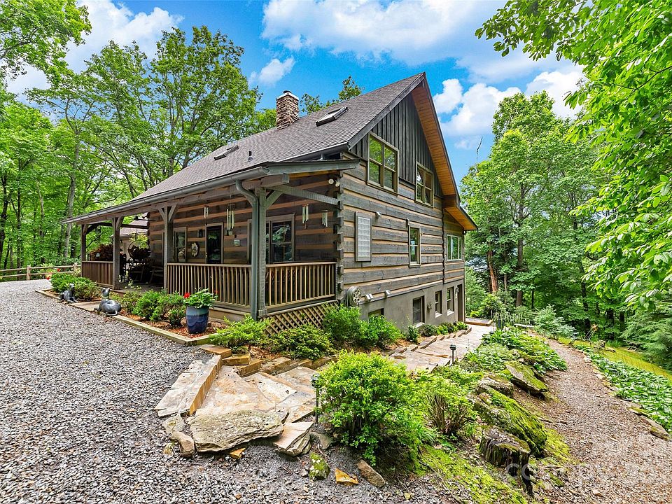 Amazing Views and Spectacular Home!! Don't miss the opportunity to call this beautiful Black Mountain gem Home. The covered front porch will invite you to sit and stay a while, and the year-long views from the screened-in/back porch will beg you not to leave! The delight is in the details, with a living area that has vaulted ceilings, all hand-hewn logs throughout, and a floor-to-ceiling stone-stacked fireplace. Keep enjoying those views from the living area and kitchen. The main floor bedroom suite features a large bathroom with a bath and walk-in closet. Need to work from home? There's an office area located off the main bedroom suite. Need extra living space? There's a second floor with two beds, one bath, and a loft area. The basement has in-law suite/apartment with a bedroom, full kitchen, living room, workout area, and bonus storage. Grab a glass of wine from the cellar and step outside to take in the year-long natural splendor!