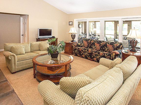 This home is offered as a 1/8th shared interest opportunity. 18 Greensward Road is a three-bedroom, two-and-a-half bath cottage-style home on a quiet, well-established street close to Kiawah's main security gate. The one-story home is set back from the road on a property with abundant trees and beautiful landscaping. The residence is within an easy ten-minute walk or short bike ride to the Island's pristine beach and West Beach neighborhood, which is currently undergoing a revitalization of amenities and recreational offerings. It is also conveniently close to the shopping and dining at Freshfields Village and the community pool and fitness facilities at the newly updated, property owners'-only Sandcastle Originally constructed in 1977, 18 Greensward Road underwent a full interior renovation in 2006 with new exterior paint in 2012 and a new roof in 2018. Inside, a large foyer opens to the great room with vaulted ceilings and a floor-to-ceiling stone fireplace. Sliding glass doors open to spacious screened porch and back deck, where views of the no. 3 fairway of the Gary Player-designed Cougar Point golf course may be enjoyed year-round. A large dining room with tile floors is adjacent to the living area and is open to the kitchen, allowing for easy hosting and entertaining. A laundry room and cozy den are located just off the kitchen. The home sleeps up to ten comfortably with a master bedroom that offers access to the back deck and a private bathroom. Two guest bedrooms share a bathroom. 18 Greensward Road is available fully furnished and as a 1/8th fractional ownership, offering a rare opportunity for buyers to enjoy Kiawah's unparalleled coastal lifestyle at a lower acquisition cost and in a low-maintenance property.